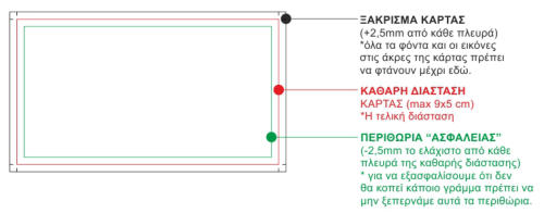 παράδειγμα για μια κάρτα 90x50mm σχεδιάστε την σελίδα σας 95x55mm δίνοντας 2,5 mm περιθώριο κοπής